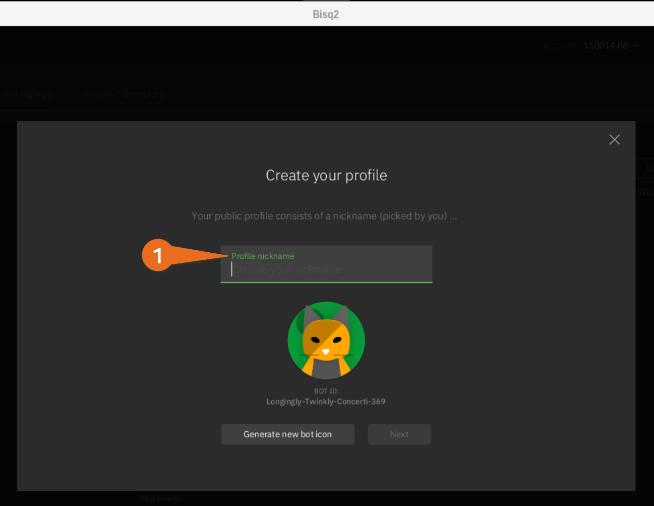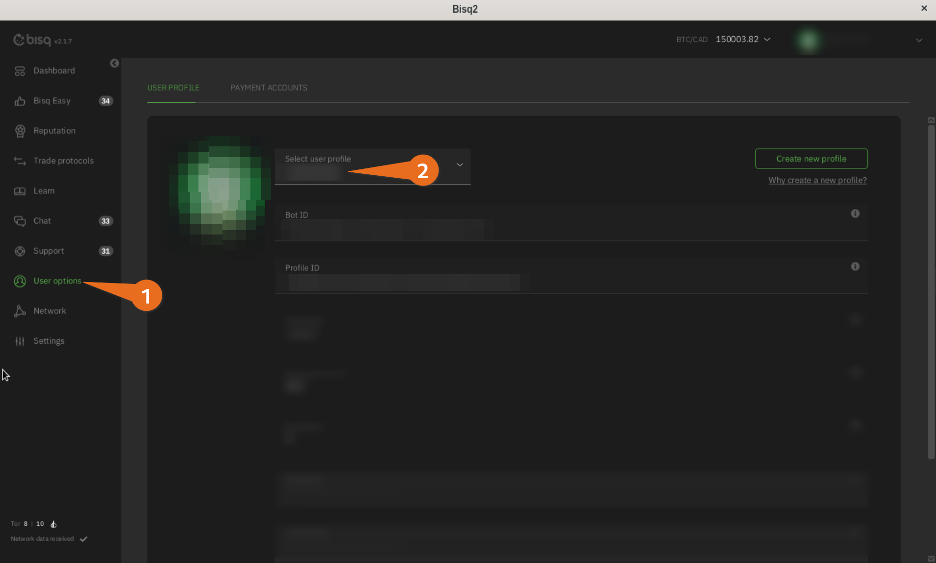 • Using Bisq 2, created a new Profile. Then searched for its associated BTC wallet address and configuration. But found none.